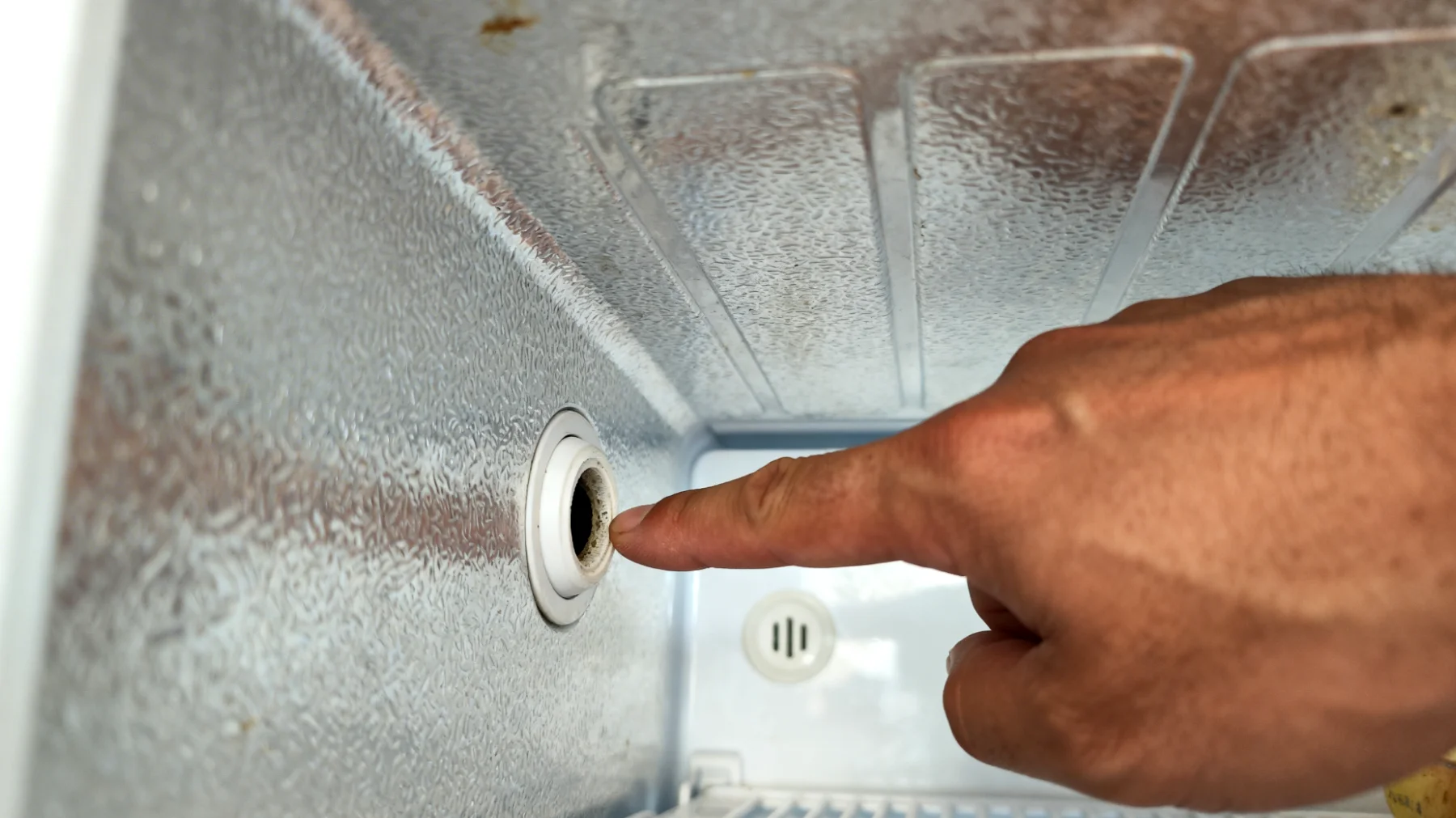 Jeśli woda pojawia się głównie w dolnej części lodówki, najczęściej wskazuje to na problem z odpływem. W takim przypadku należy odnaleźć otwór odpływowy – w większości modeli znajduje się on na tylnej ścianie komory chłodniczej, tuż nad szufladami na warzywa lub w ich pobliżu. Czasem jest osłonięty małą osłonką plastikową. Po zlokalizowaniu warto sprawdzić, czy w otworze nie ma widocznych zanieczyszczeń, lodu lub fragmentów jedzenia.